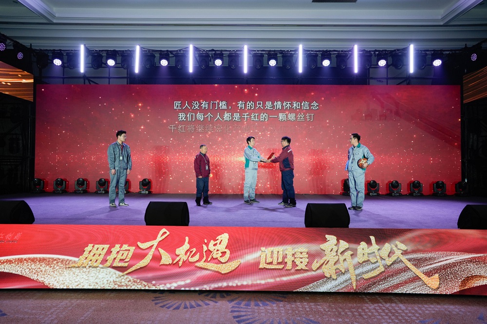 千紅工會創新評優機制,打造獨具一格的頒獎儀式,讓榮獲2024年度千紅先進標兵、管理先鋒、新銳成長獎、優秀團隊協作獎的優秀員工們感受超強的儀式感和精彩的高光時刻。